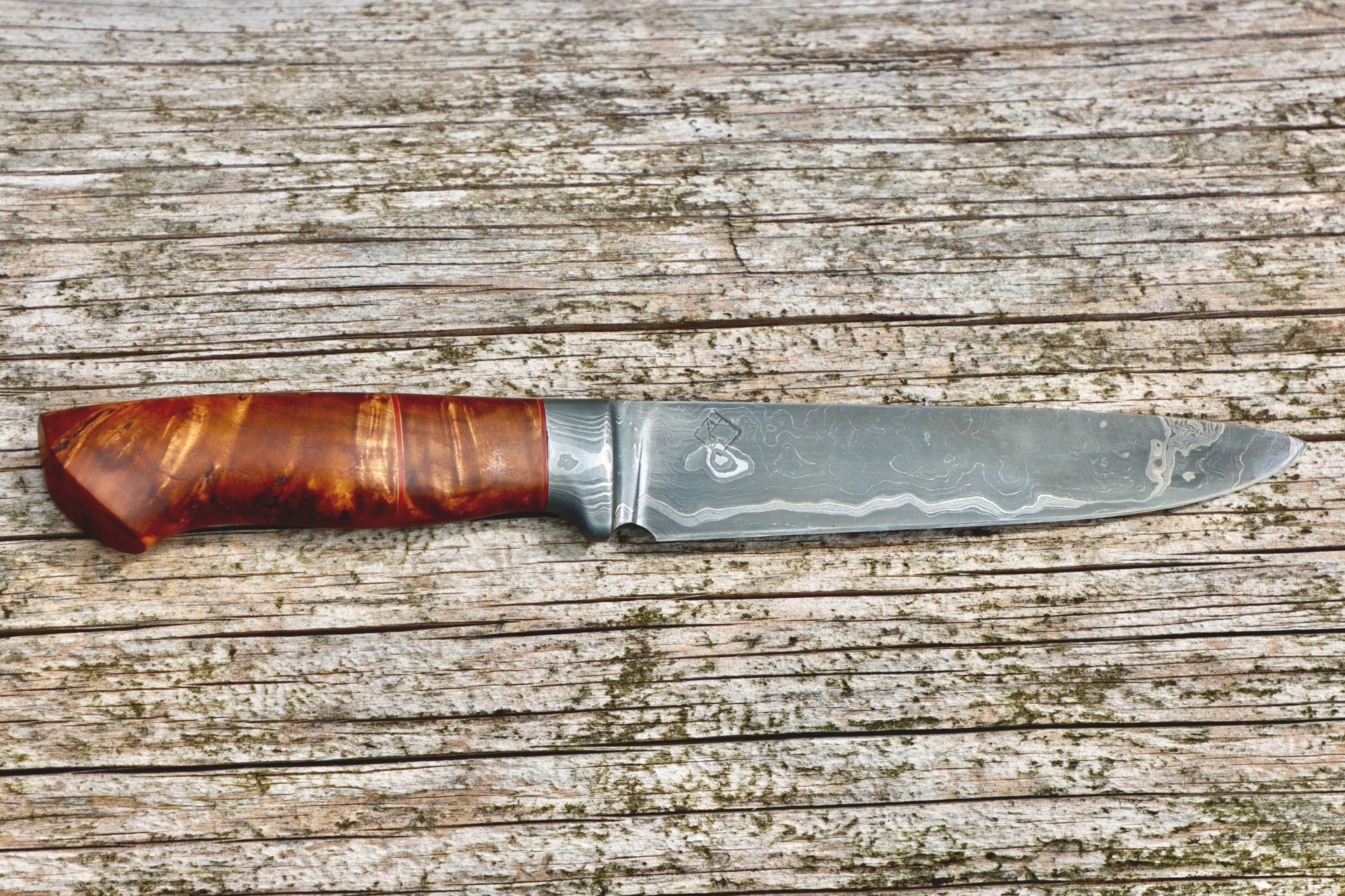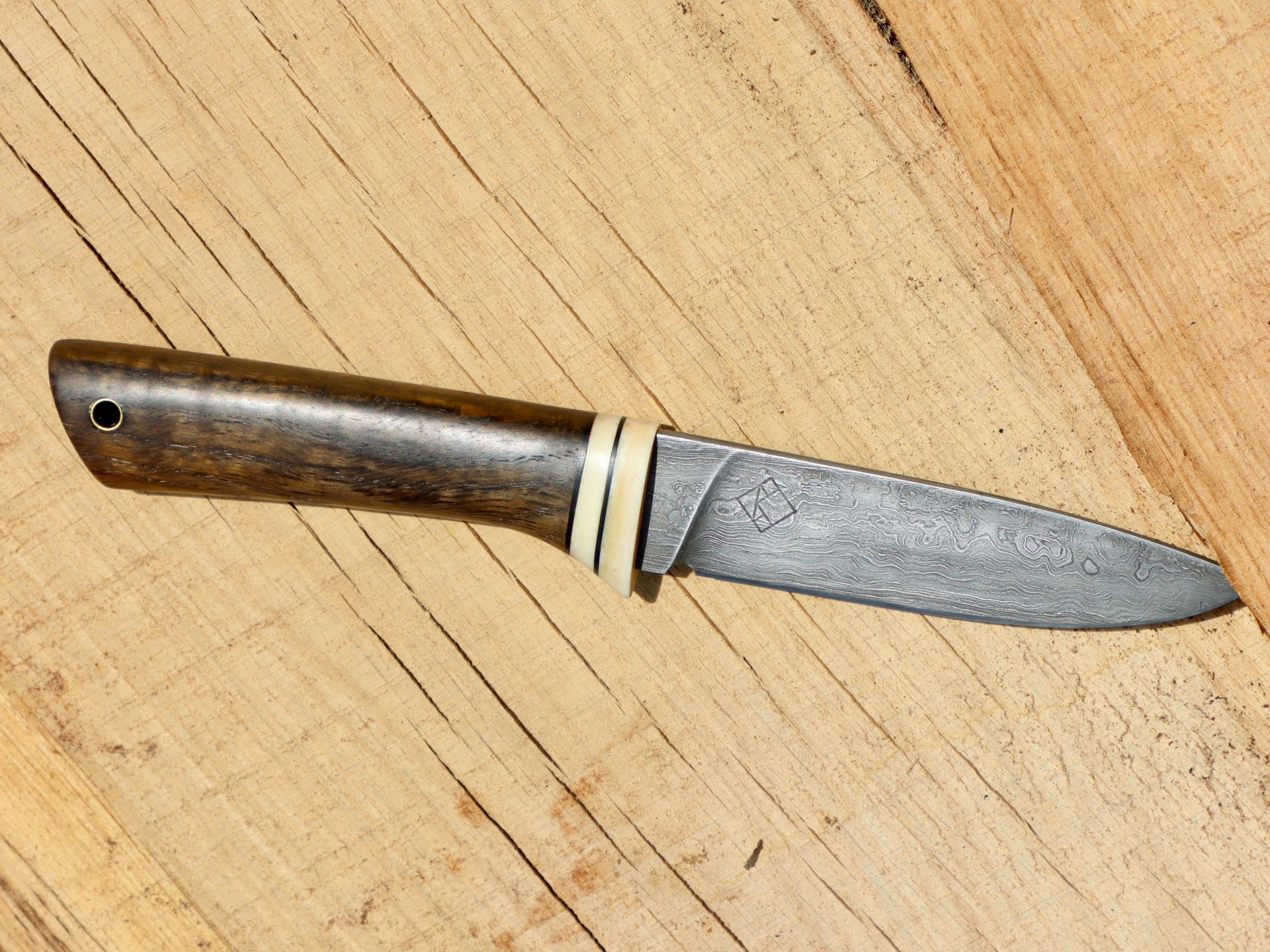 Petty aus Leistungszonen-Damast, Griff aus Zwetschgenholz, Zwinge aus Büffelhorn