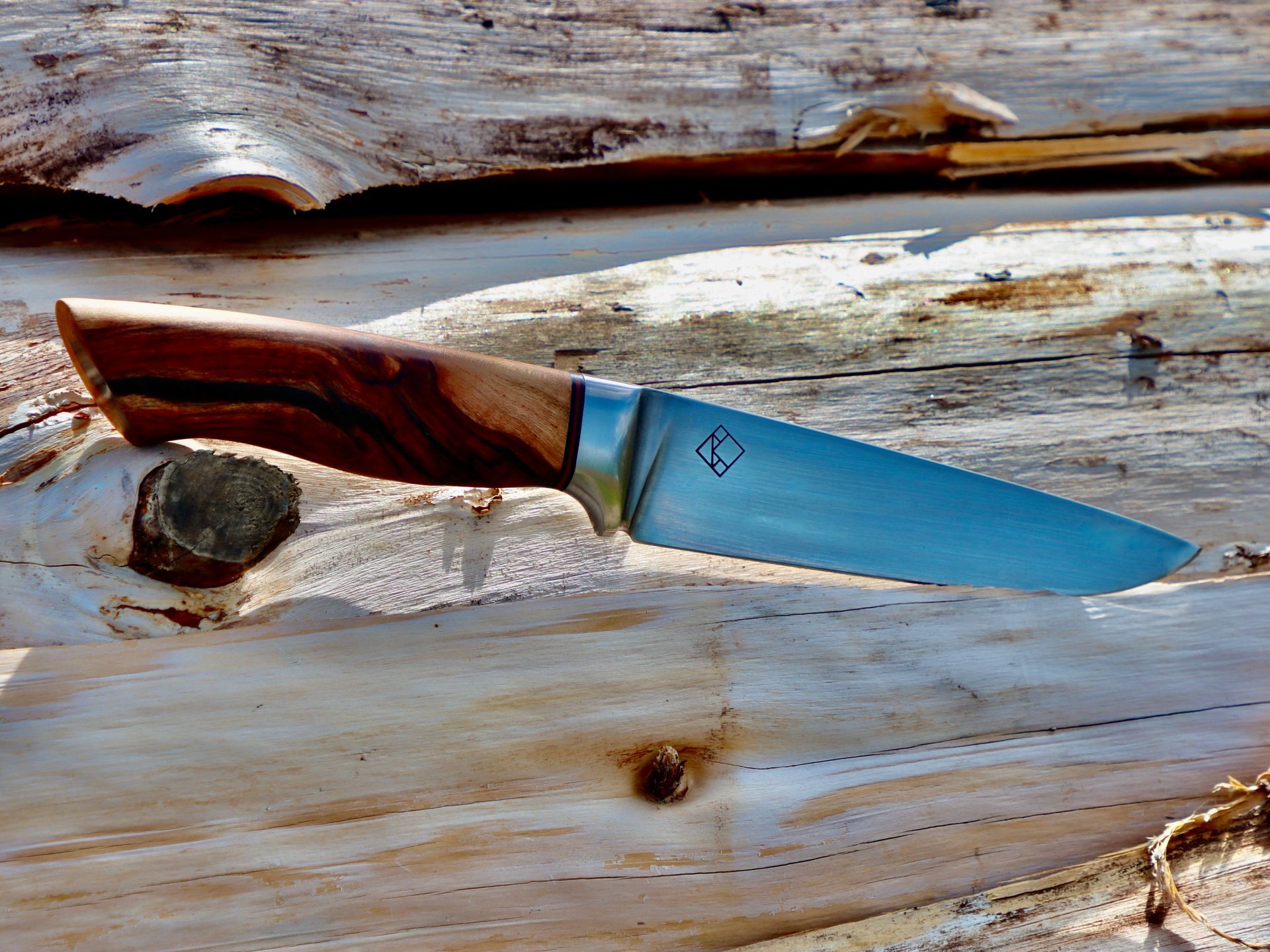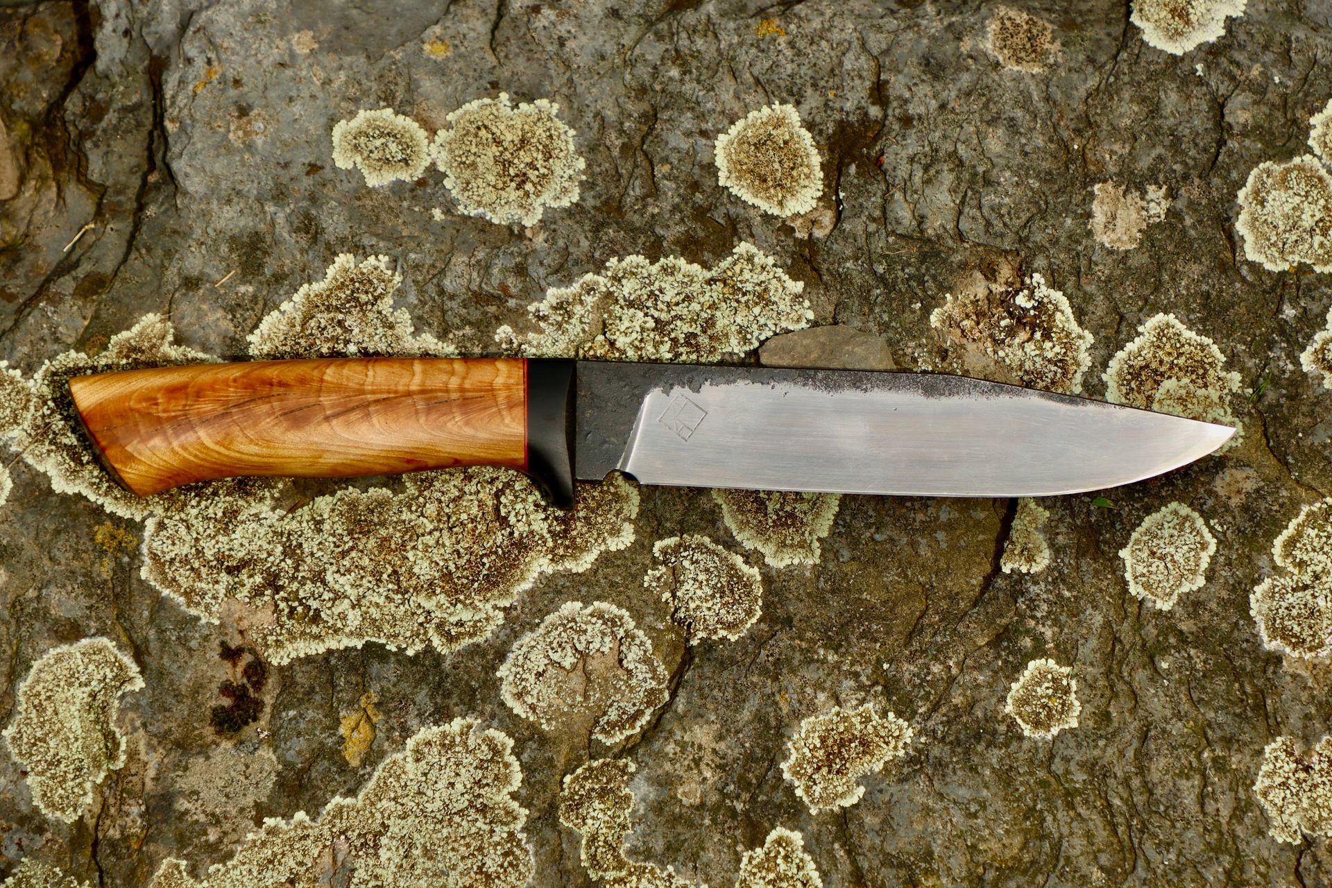 Integralmesser aus C105W, Griff aus Zwetschgenholz, Scheide aus Rindsleder