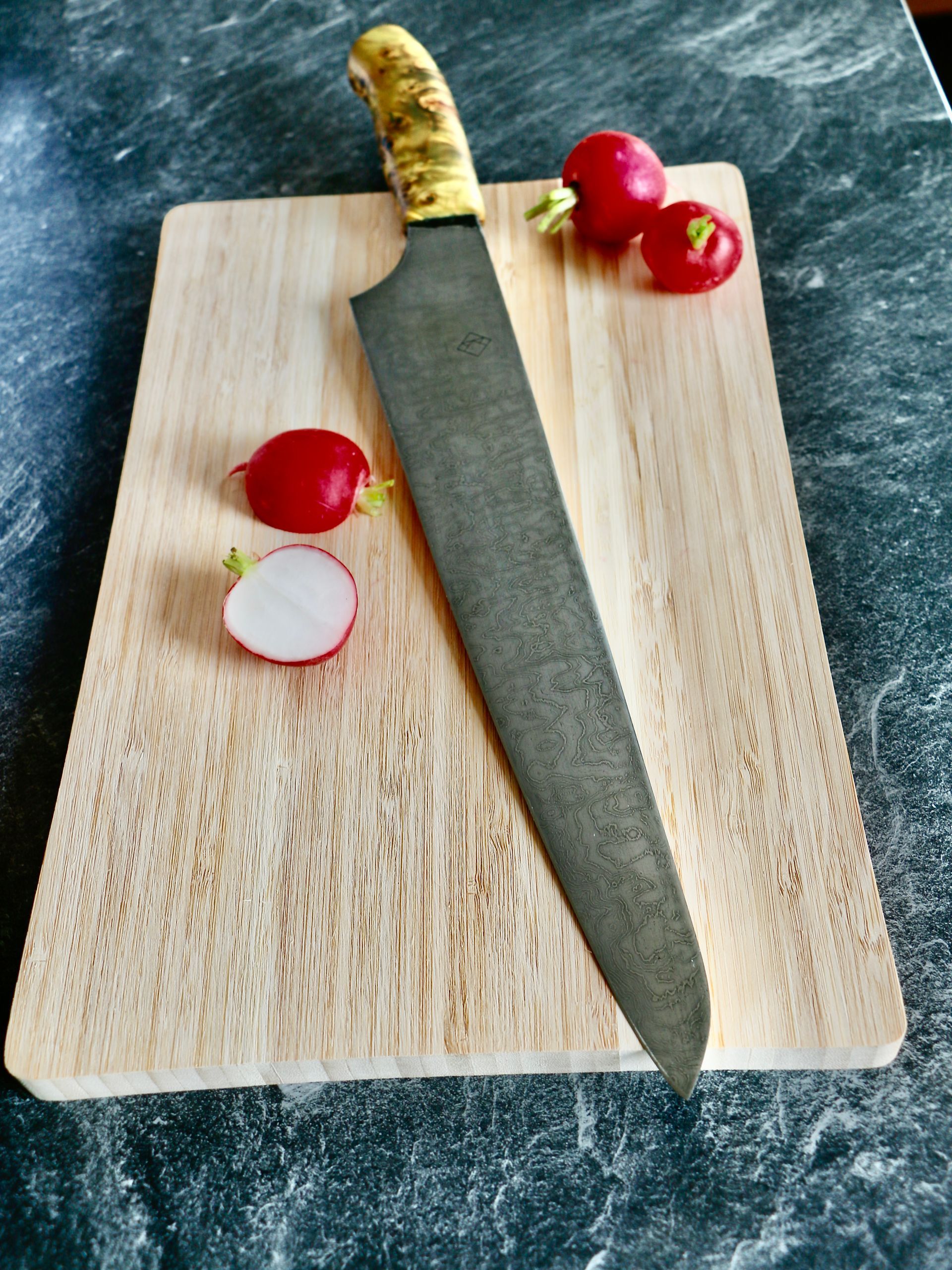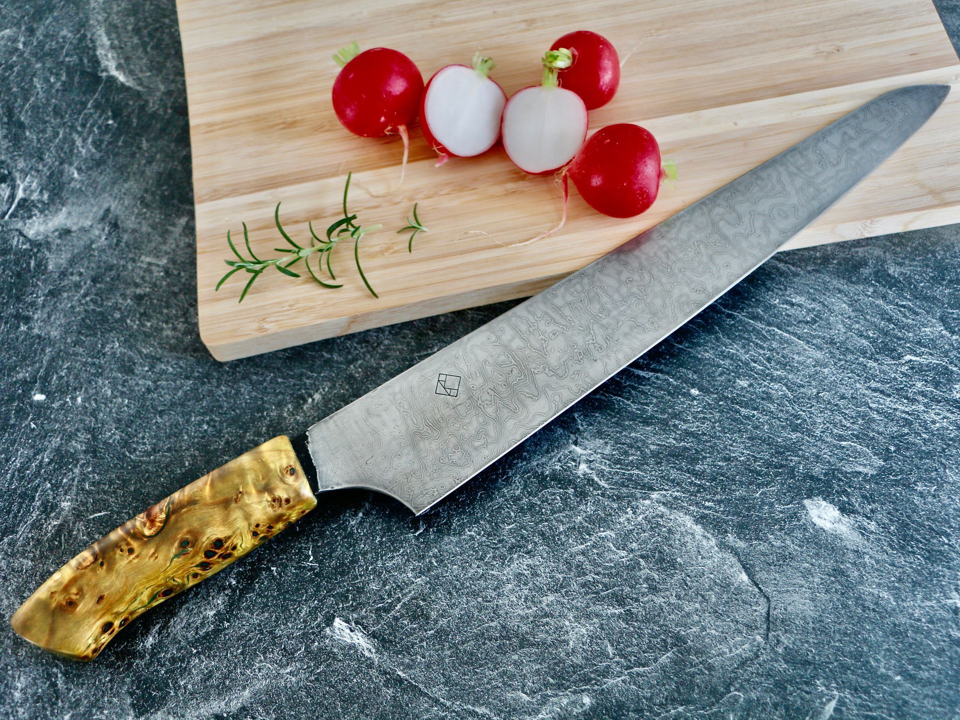 Gyuto aus Hochleistungs-Damast, Griff aus Pappelholz